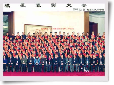 12月16日,由人力資源和社會保障部、中國石油和化學工業協會主持,在北京人民大會堂召開的“全國石油和化學工業勞動模范表彰大會”上。我公司單雪山同志被評為“全國石油和化學工業勞動模范”,并受到了黨和國家領導人的親切接見。