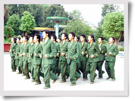圖為新近招聘的第六批三十余名青工在進行入廠前軍訓。