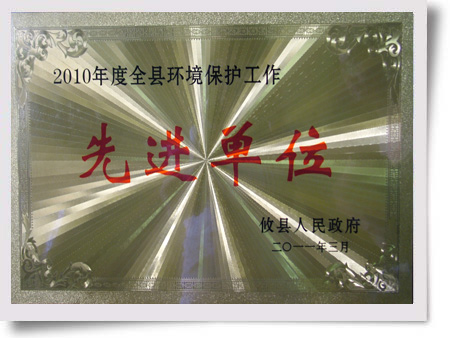 近日,公司被縣人民政府評為2010年度全縣環境保護工作先進單位。