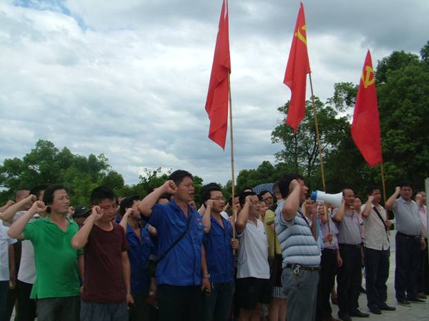 2012年6月30日,驕陽似火,為紀念中國共產黨建黨91周年,湖南湘東化工機械有限公司組織本公司全體黨員到革命老區茶陵開展紅色教育活動,本次活動主題:在茶陵烈士公園重溫入黨誓詞,到工農兵政府聆聽革命前輩的故事,登云陽山尋找英雄壯士的足跡。借此緬懷革命先烈的豐功偉績、弘揚先烈精神。