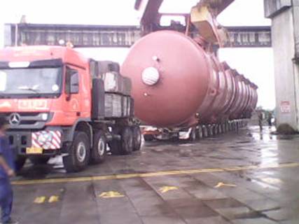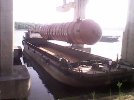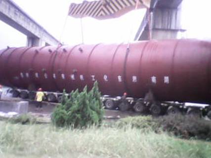 日,在湖南衡陽白沙洲千噸級碼頭,由我公司制造完工的上海金山石化項目丙烯塔順利發貨。該設備共兩臺,每臺總長度為
