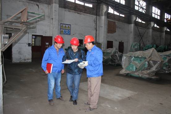 (圖為審查組專家李老師到金工分廠查看設(shè)備運(yùn)行情況)