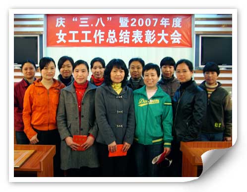 三月六日,公司三樓會議室洋溢著一片春天的氣息。在這兒,一年一度的“慶三八暨二○○七年度女工工作先進個人表彰大會”正在隆重舉行。一年來,公司廣大女職工積極投身于各項生產(chǎn)經(jīng)營活動中,立足崗位,努力工作,為提高公司的經(jīng)濟效益做出了積極貢獻,涌現(xiàn)出了一批愛崗敬業(yè)、無私奉獻的先進個人。為表彰先進,鼓勵所有女職工向她們學(xué)習(xí),進一步推動公司女職工工作,公司黨委副書記姜衡陽代表公司在會上表彰了二○○七年度“三八紅旗手”3名,“先進女工”13名,“雙文明家庭”1戶。獲獎的女職工們在感受榮譽的同時感受到了公司真誠的鼓勵,紛紛表示,今年要更加踏實工作,積極進取,做好湘化機女性的表率。