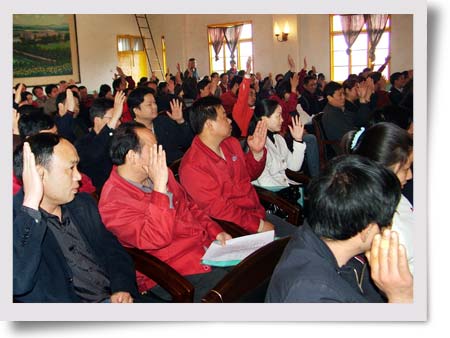 2008年4月16日上午10時,在公司科技樓四樓會議室,由工會主席姜衡陽同志主持,召開了二屆一次職工代表大會,正式代表114人,實到代表107人,符合法定開會人數。 與會代表聽取了董事長兼總經理蘇成同志關于改制工作的說明,并就改制工作的五個方案進行了認真的審議和表決。對《企業改制實施方案》、《企業改制后內部退養人員生活費計發辦法及基本社會保險繳費基數確定辦法》、《企業改制職工分流安置方案》和《企業改制后新公司聘用人員的辦法》的表決,分別以107票一致通過。對《企業改制支付員工補償金辦法》的表決,以103票同意,4票棄權通過。圓滿完成了會議議程。 省石化行管辦副主任方忠,市總工會基層工作部部長袁一之等省市領導到會并講話。